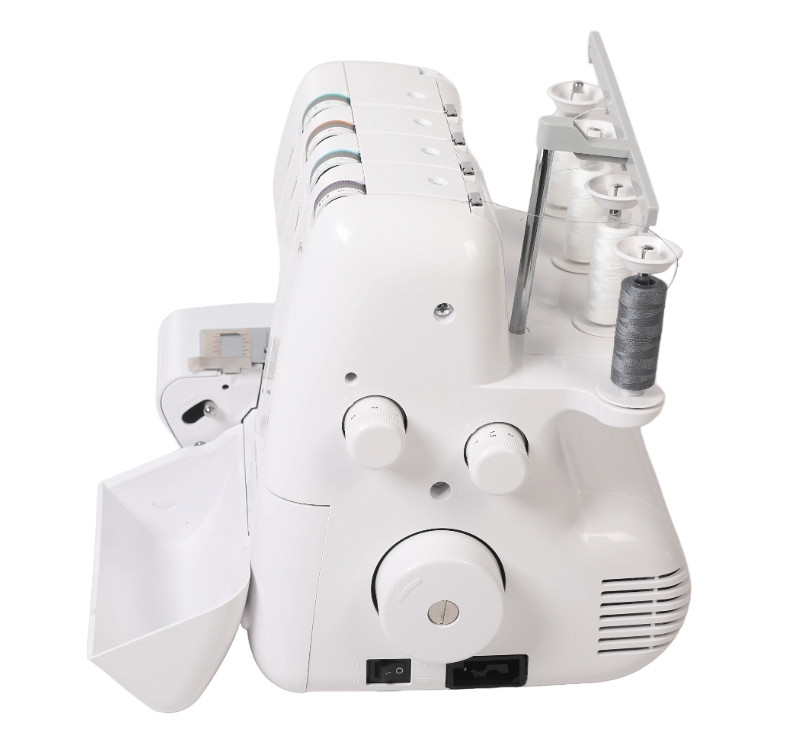 Versatile 3 or 4 Thread Overlocker, with Auto Tension Release, Differential Feed, Electronic Foot Control, Foot Pressure Regulator and a unique opening system for quick and easy threading with a colour-coded threading system!