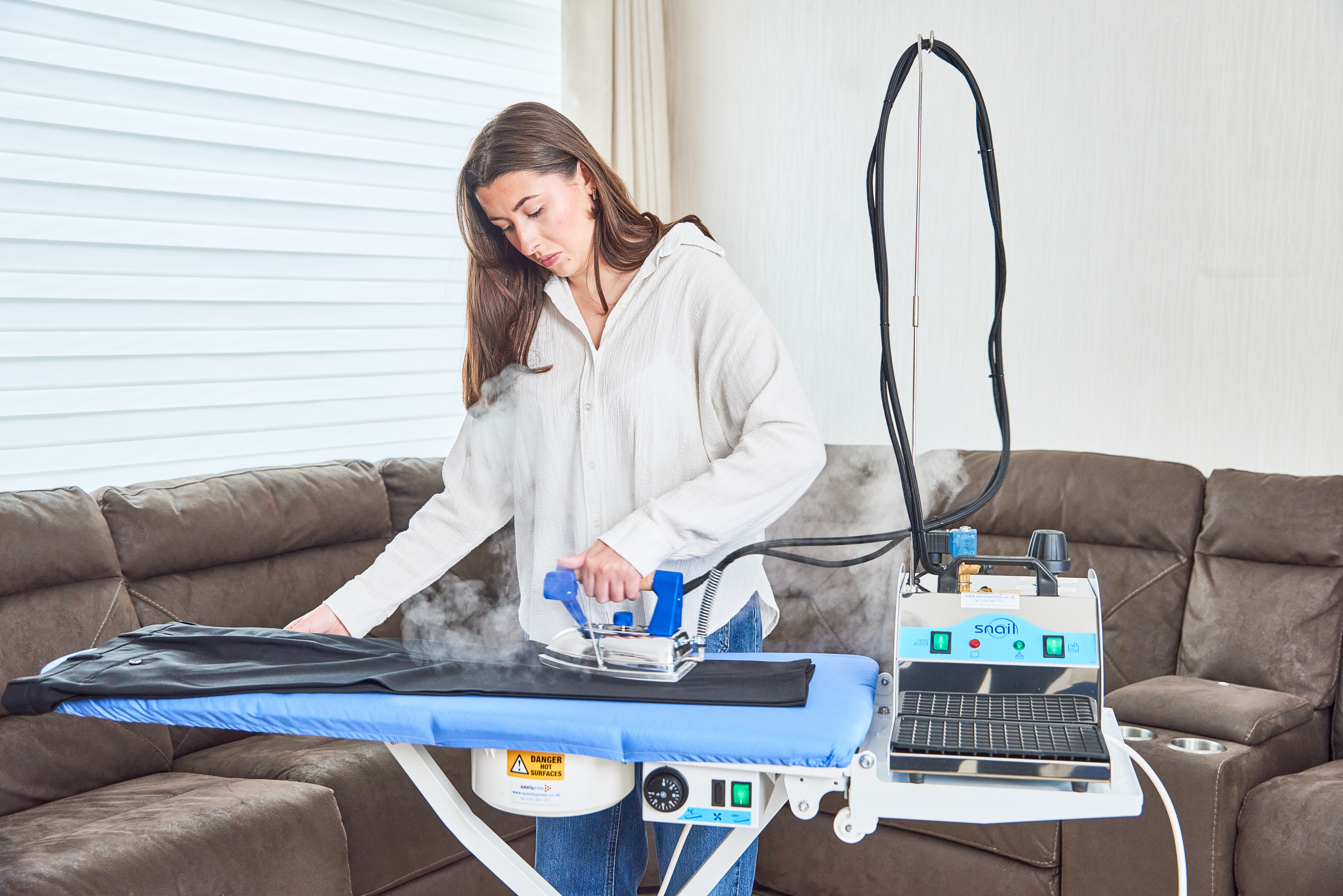 The Snail vacuum heated surface speeds up ironing and gives better results. It also stops the board from getting wet.